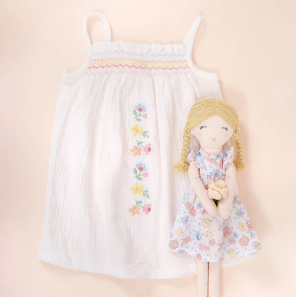 This organic Albetta gauze boho style summer dress is hand-embroidered from the most delicately soft deluxe cotton which is just too cute for words! The dazzling colourful shirring design makes this Albetta embroidered dress just perfect for your little ones.