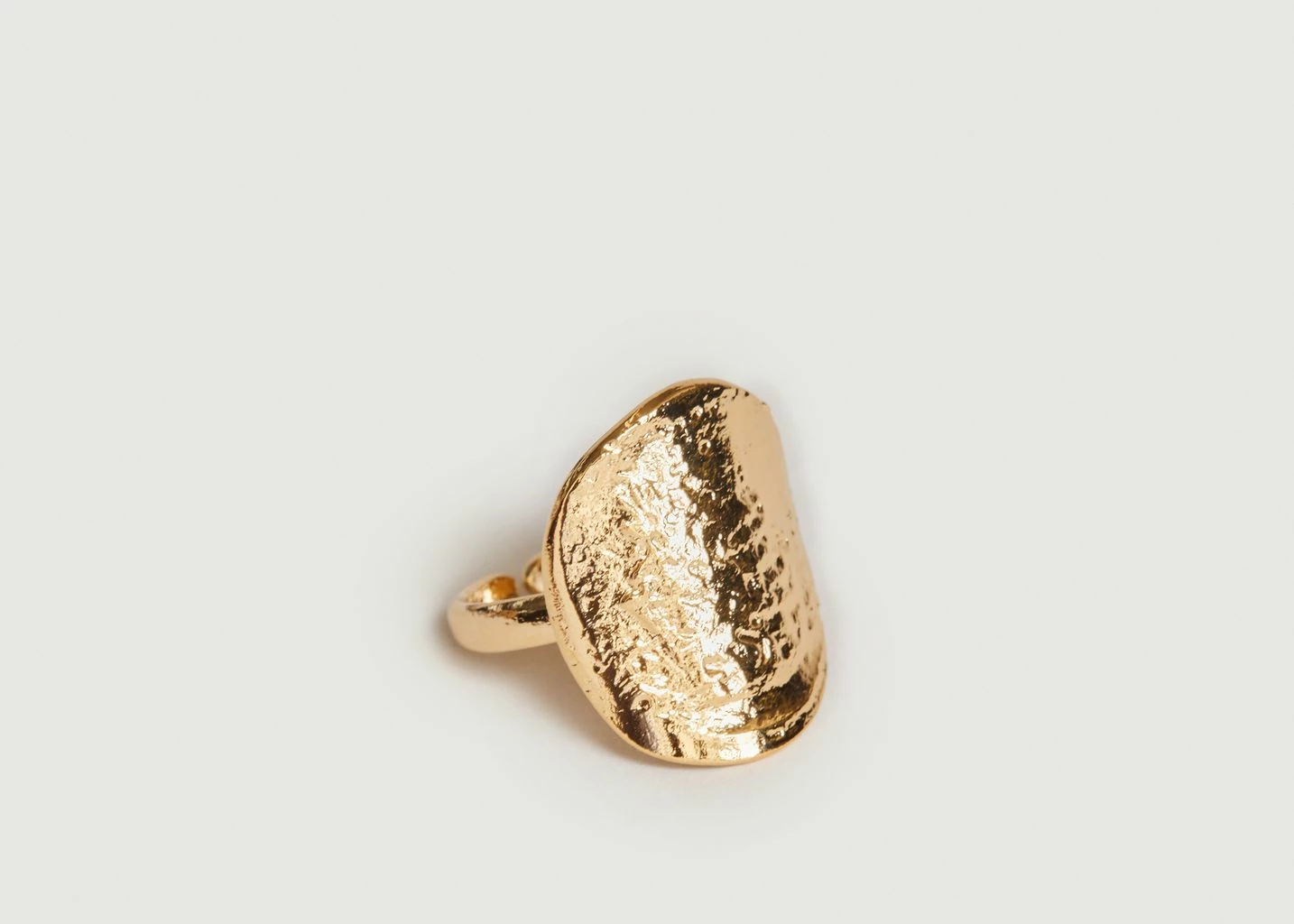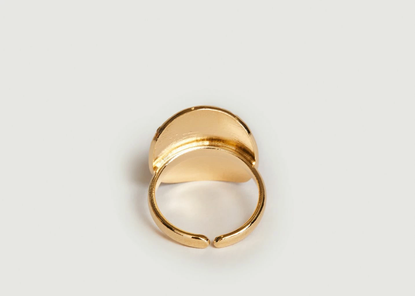 Xanadu ring in 24 carat gold-plated brass, 0.5 micron thick, with a stamped medal. Handmade in Paris. Adjustable. The Xanadu collection is full of energy, born from the shock of raw materials. Eloquent jewels with character that will delight you. Fall for this pretty, radiant ring!