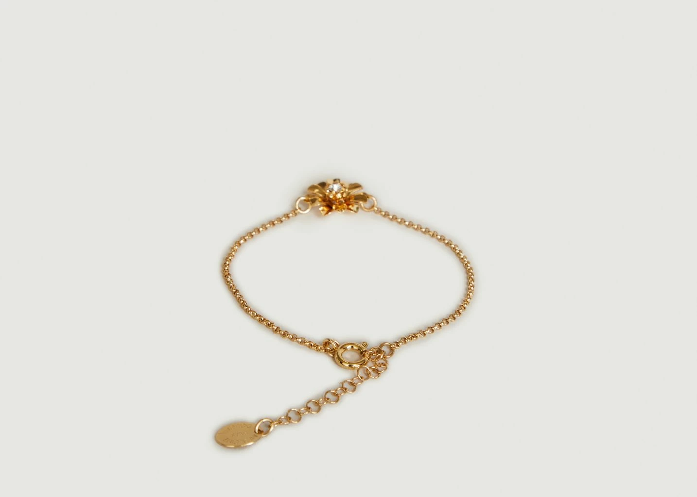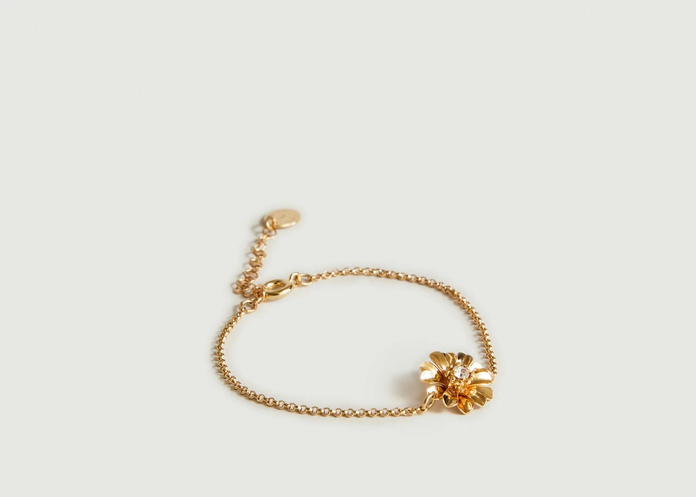 Brass bracelet gilded with 24 carat gold, decorated with a floral motif and a crystal. Adjustable length. Handcrafted in Paris. Let yourself be seduced by the floral spirit of the Xenon collection. We love this bracelet for its delicate style that can be mixed with a dress as well as with a shirt, jeans and sneakers.