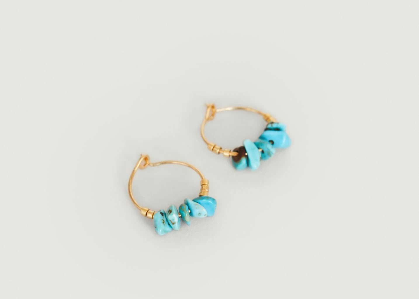 Hoop earrings gilded with 24 carats gold and adorned with semi-precious stones: turquoise. Creole diameter 1.5 cm. Total length 1.7 to 2 cm. Jewel made by hand in Paris. Enhance your outfit with these Yvette hoop earrings by Medecine Douce! A nod to the Mediterranean spirit, the Yvette collection deploys its links of agate and turquoise shards, like a line of luminous color full of energy. The color and shape of the stones may vary slightly from the photos because each piece of jewelry is unique.