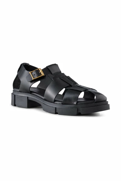 Alva Fisherman will for sure become a go-to sandal during the warm months. They have a characteristic tracksole, beautiful cage-style upper and a gold-tone metal buckle. Style them with your favourite summer dress. Upper: 100% leather Lining: 100% leather Outsole: Recycled Rubber TR Handmade in Portugal