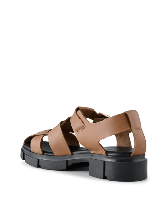 – Cage style sandals – Tan upper – Black tracksole – Gold tone buckle – Upper: 100% leather – Lining: 100% leather – Outsole: rubber – SHOE THE BEAR RD Size: 4