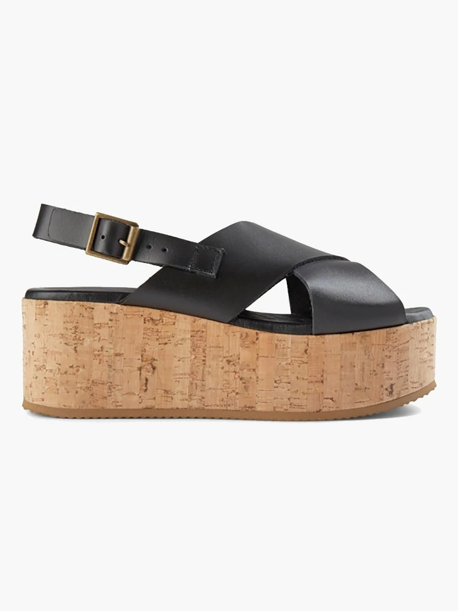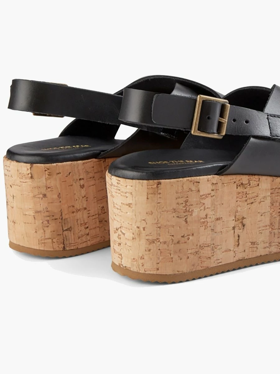 A perfect casual sandal, The Begonia Ankle Wedge by Shoe the Bear can be easily worn with skirts, jeans and dresses. With it’s plaited strap design and cork platform these sandals are stylish, comfy and easy to wear. Black lace strap Adjustable buckle fastening Cork platform 6.5cm height Composition: Leather