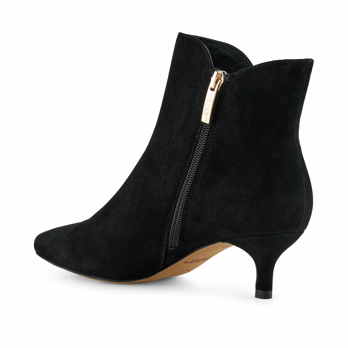 Love this boot – Perfect for spring with jeans or dresses. Feminine shape, and very wearable. Saga Zip is a beautiful and feminine ankle bootie in smooth suede with a modern heel that gives the shoe an elegant shape. Saga is an absolute must-have on your shoe rack, as it can add an edgy twist to a feminine look. 100% suede Leather lining Rubber outsole Pointy toe Heel height: 5 cm Shaft height: 10,5 – 13 cm Made in China