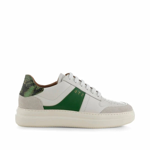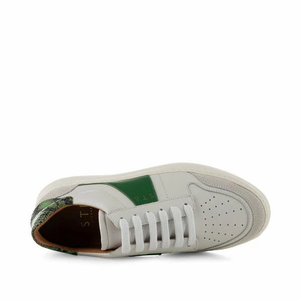 Shoe The Bear Valda Sneaker Suede Leather – White/Green Multi Valda is our casual sneaker combining sporty functionality and classic simplicity. The sneaker is made in Portugal in a combination of leather and delicate suede. Valda has shoelaces on the front, printed details at the side and heel as well as an embossed EVA sole which emphasises the textured details of the shoe.